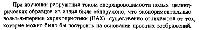 При изучении разрушения током сверхпроводимости полых цилиндрических образцов из индия бьцю обнаружено, что экспериментальные вольт-амперные характеристики (ΒΑΧ) существенно отличаются от тех, которые можно было бы построить на основании простых соображений.