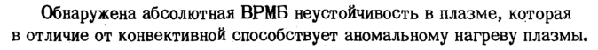 Обнаружена абсолютная ВРМБ неустойчивость в плазме, которая в отличие от конвективной способствует аномальному нагреву плазмы.