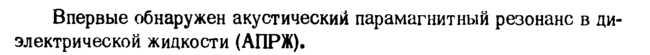 Впервые обнаружен акустический парамагнитный резонанс в ди электрической жидкости (АПРЖ).