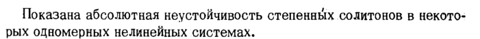 Показана абсолютная неустойчивость степенных солитонов в некото рых одномерных нелинейных системах.