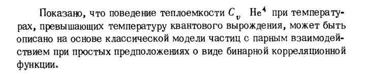 Показано, что поведение теплоемкости Cv Не4 при температурах, превышающих температуру квантового вырождения, может быть описано на основе классической модели частиц с парным взаимодействием при простых предположениях о виде бинарной корреляционной функциис