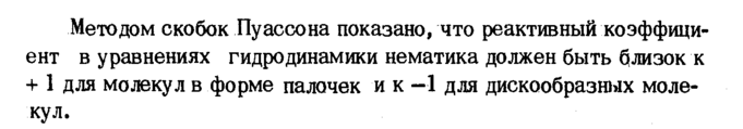 Методом скобок Пуассона показано, что реактивный коэффициент в уравнениях гидродинамики нематика должен быть близок к + 1 для молекул в форме палочек и к -1 для дискообразных молекул.
