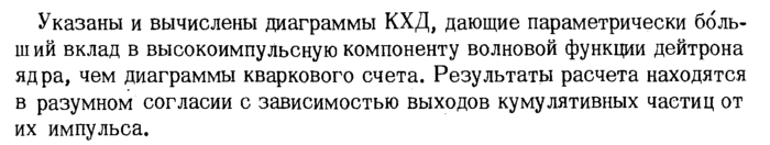 Указаны и вычислены диаграммы КХД, дающие параметрически ббль-ший вклад в высокоимпульсную компоненту волновой функции дейтрона ядра, чем диаграммы кваркового счета. Результаты расчета находятся в разумном согласии с зависимостью выходов кумулятивных частиц от их импульса.