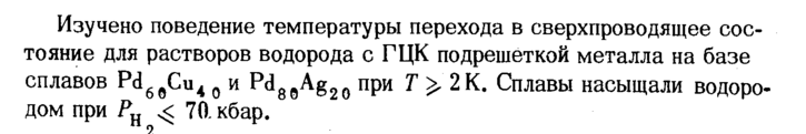 Изучено поведение температуры перехода в сверхпроводящее состояние для растворов водорода с ГЦК подрешеткой металла на базе сплавов Pd6QCu4 0 и pd80Ag20 при Τ > 2 К. Сплавы насыщали водородом при Рн ^ 70. кбар.