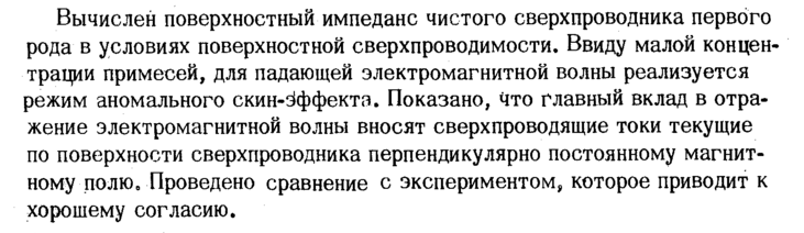 Вычислен поверхностный импеданс чистого сверхпроводника первого рода в условиях поверхностной сверхпроводимости. Ввиду малой концентрации примесей, для падающей электромагнитной волны реализуется режим аномального скин-эффекта. Показано, что главный вклад в отражение электромагнитной волны вносят сверхпроводящие токи текущие по поверхности сверхпроводника перпендикулярно постоянному магнитному полю. Проведено сравнение с экспериментом, которое приводит к хорошему согласию.
