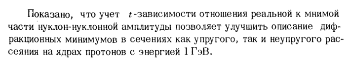 Показано, что учет «-зависимости отношения реальной к мнимой части нуклон-нуклонной амплитуды позволяет улучшить описание дифракционных минимумов в сечениях как упругого, так и неупругого рассеяния на ядрах протонов с энергией 1 ГэВ.