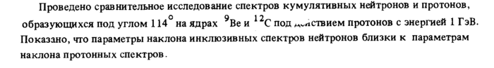 Проведено сравнительное исследование спектров кумулятивных нейтронов и протонов, образующихся под углом 114° на ядрах 9Ве и 12С под м^ствием протонов с энергией 1 ГэВ. Показано, что параметры наклона инклюзивных спектров нейтронов близки к параметрам наклона протонных спектров.