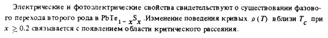 Электрические и фотоэлектрические свойства свидетельствуют о существовании фазового перехода второго рода в PbTej _ χΒχ .Изменение поведения кривых ρ (Г) вблизи Тс при д: > 0.2 связывается с появлением области критического рассеяния.