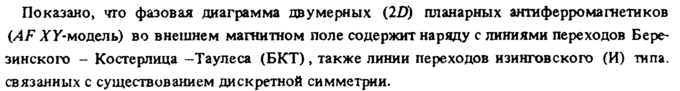 Показано, что фазовая диаграмма двумерных (2D) план арных анти ферромагнетиков (AF XУ-модель) во внешнем магнитном поле содержит наряду с линиями переходов Бере-зинского Костерлица -Таулеса (БКТ), также линии переходов изинговского (И) типа, связанных с существованием дискретной симметрии.