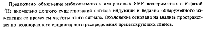 Предложено объяснение наблюдаемого в импульсных ЯМР экспериментах с #-фазой 3Не аномально долгого существования сигнала индукции и недавно обнаруженного изменения со временем частоты этого сигнала. Объяснение основано на анализе пространственно неоднородного стационарного распределения прецессирующих спинов.