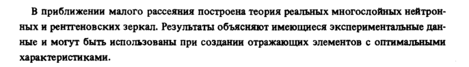 В приближении малого рассеяния построена теория реальных многослойных нейтронных и рентгеновских зеркал. Результаты объясняют имеющиеся экспериментальные данные и могут быть использованы при создании отражающих элементов с оптимальными характеристиками.