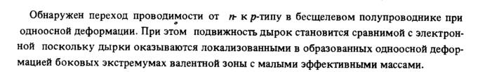 Обнаружен переход проводимости от пк р-типу в бесщелевом полупроводнике при одноосной деформации. При этом подвижность дырок становится сравнимой с электронной поскольку дырки оказываются локализованными в образованных одноосной деформацией боковых экстремумах валентной зоны с малыми эффективными массами.