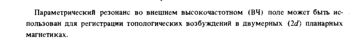 Параметрический резонанс во внешнем высокочастотном (ВЧ) поле может быть использован для регистрации топологических возбуждений в двумерных