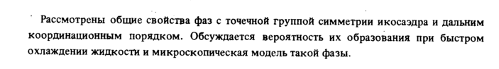 Рассмотрены общие свойства фаз с точечной группой симметрии икосаэдра и дальним координационным порядком. Обсуждается вероятность их образования при быстром охлаждении жидкости и микроскопическая модель такой фазы.