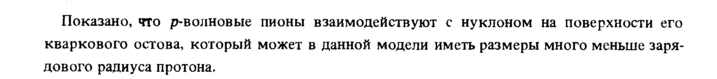 Показано, что р-волновые пионы взаимодействуют с нуклоном на поверхности его кваркового остова, который может в данной модели иметь размеры много меньше зарядового радиуса протона.