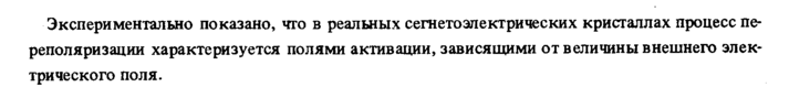 Экспериментально показано, что в реальных сегнетоэлектрических кристаллах процесс переполяризации характеризуется полями активации, зависящими от величины внешнего электрического поля.