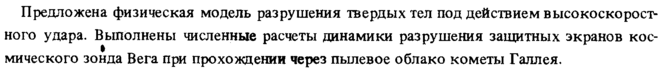 Предложена физическая модель разрушения твердых тел под действием высокоскоростного удара. Выполнены численные расчеты динамики разрушения защитных экранов космического зонда Вега при прохождении через пылевое облако кометы Галлея.
