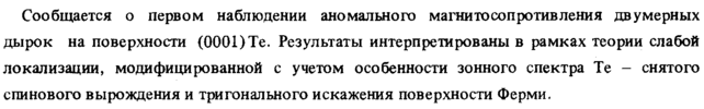 Сообщается о первом наблюдении аномального магни то сопротивления двумерных дырок на поверхности (0001) Те. Результаты интерпретированы в рамках теории слабой локализации, модифицированной с учетом особенности зонного спектра Те снятого спинового вырождения и тригонального искажения поверхности Ферми.