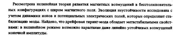 Рассмотрена нелинейная теория развития магнитных возмущений в бесстолкновитель-ных конфигурациях с широм магнитного поля. Эволюция неустойчивости исследована с учетом динамики ионов и потенциальных электрических полей, которые определяют стабилизацию модыНайдено, что дрейфовая тиринг-мода обладает метастабильными свойствами: в нелинейном режиме возможно нарастание даже линейно устойчивых возмущений конечной амплитуды.
