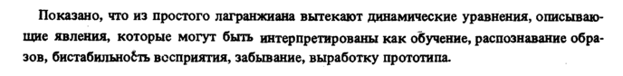 Показано, что из простого лагранжиана вытекают динамические уравнения, описывающие явления, которые могут быть интерпретированы как обучение, распознавание образов, бистабильнобть восприятия, забывание, выработку прототипа.
