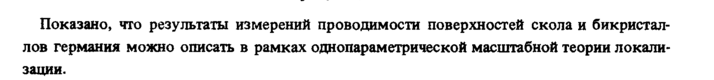 Показано, что результаты измерений проводимости поверхностей скола и бикристал-лов германия можно описать в рамках одн опарам етри чес кой масштабной теории локализации.