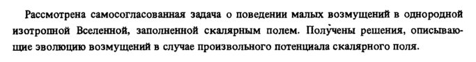Рассмотрена самосогласованная задача о поведении малых возмущений в однородной изотропной Вселенной, заполненной скалярным полем. Получены решения, описывающие эволюцию возмущений в случае произвольного потенциала скалярного поля.