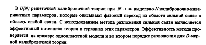 В U(N) решеточной калибровочной теории при N -+ <* выд е лен о. N калибров очно-инвариантных параметров, которые описывают фазовый переход из области сильной связи в область слабой связи. С использованием метода разложения сильной связи вычисляется эффективный потенциал теории в терминах этих параметров. Эффективность метода проверяется на примере одноплаюетной модели и во втором порядке разложения для ^-мерной калибровочной теории.
