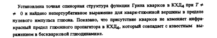 Установлена точная сшшорная структура функции Грина кварков в КХД4 при Τ Φ Φ О и найдено непертурбативное выражение для кварк-глюонной вершины в пределе нулевого импульса глюона. Показано, что присутствие кварков не изменяет инфракрасный предел глюонного пропагатора в КХД4, который совпадает с известным выражением в бескварков ой глюодинамике.