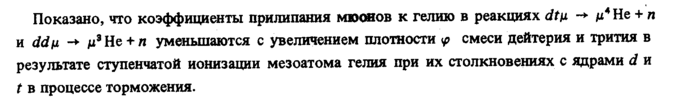 Показано, что коэффициенты прилипания мюонов к гелию в реакциях όίμ, μ4 Не + л и άάμ ~* д3Не + л уменьшаются с увеличением плотности φ смеси дейтерия и трития в результате ступенчатой ионизации мезоатома гелия при их столкновениях с ядрами d и t в процессе торможения.
