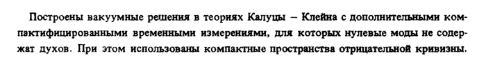 Построены вакуумные решения в теориях Калуцы Клейна с дополнительными компактифицированными временными измерениями, для которых нулевые моды не содержат духов. При этом использованы компактные пространства отрицательной кривизны.