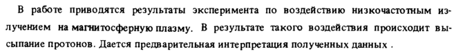 В работе приводятся результаты эксперимента по воздействию низкочастотным излучением на магнитосферную плазму. В результате такого воздействия происходит высыпание протонов. Дается предварительная интерпретация полученных данных .