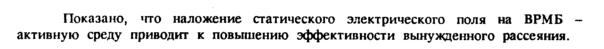 Показано, что наложение статического электрического поля на ВРМБ -активную среду приводит к повышению эффективности вынужденного рассеяния.