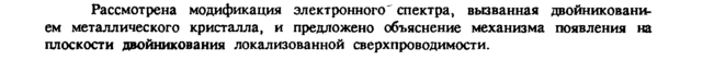 Рассмотрена модификация электронного' спектра, вызванная двойниковани-ем металлического кристалла, и предложено объяснение механизма появления на плоскости двойникования локализованной сверхпроводимости.