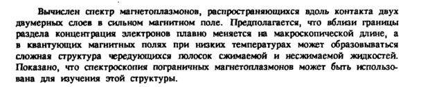 Вычислен спектр магнетоплазмонов, распространяющихся вдоль контакта двух двумерных слоев в сильном магнитном поле. Предполагается, что вблизи границы раздела концентрация электронов плавно меняется на макроскопической длине, а в квантующих магнитных полях при низких температурах может образовываться сложная структура чередующихся полосок сжимаемой и несжимаемой жидкостей. Показано, что спектроскопия пограничных магнетоплазмоков может быть использована для изучения этой структуры.