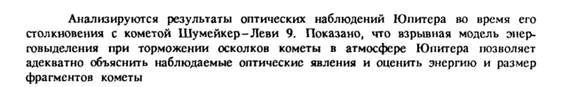 Анализируются результаты оптических наблюдений Юпитера во время его столкновения с кометой Шумейкер-Леви 9. Показано, что взрывная модель энерговыделения при торможении осколков кометы в атмосфере Юпитера позволяет адекватно объяснить наблюдаемые оптические явления и оценить энергию и размер фрагментов кометы