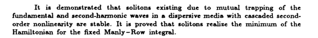 It is demonstrated that solitons existing due to mutual trapping of the fundamental and second-harmonic waves in a dispersive media with cascaded second-order nonlinearity are stable. It is proved that solitons realize the minimum of the Hamiltonian for the fixed Manly-Row integral.