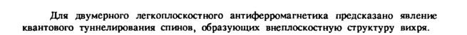 Для двумерного легкоплоскостного антиферромагнетика предсказано явление квантового туннелирования спинов, образующих вне плоскостную структуру вихря.