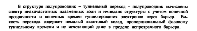 В структуре полупроводник туннельный переход полупроводник вычислены спектр низкочастотных плазменных волн и импеданс структуры с учетом конечной прозрачности и конечных времен туннелирования электронов через барьер. Емкость перехода содержит немалый квантовый вклад, пропорциональный фазовому туннельному времени и не исчезающий даже в пределе непрозрачного барьера.