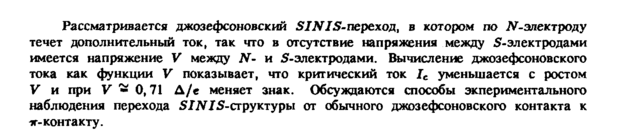 Рассматривается джозефсоновский SINIS-переход^ в котором по JV-алектроду течет дополнительный ток, так что в отсутствие напряжения между 5-электродами имеется напряжение V между Nи 5-электродами. Вычисление джозефсоновского тока как функции V показывает, что критический ток 1С уменьшается с ростом V и при V » 0,71 Δ/e меняет знак. Обсуждаются способы экпериментального наблюдения перехода 5/7У/5-структуры от обычного джозефсоновского контакта к •я--контакту.