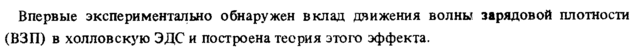 Впервые экспериментально обнаружен вклад движения волны зарядовой плотности (ВЗП) в холловскую ЭДС и построена теория этого эффекта.