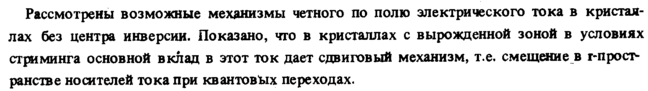 Рассмотрены возможные механизмы четного по полю электрического тока в кристаллах без центра инверсии. Показано, что в кристаллах с вырожденной зоной в условиях стриминга основной вклад в этот ток дает сдвиговый механизм, т.е. смещение в г-прост-ранстве носителей тока при квантовых переходах.