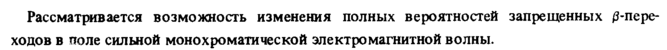 Рассматривается возможность изменения полных вероятностей запрещенных 0-пере-ходов в поле сильной монохроматической электромагнитной волны.