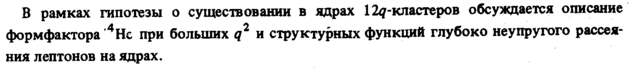 В рамках гипотезы о существовании в ядрах 1 ^-кластеров обсуждается описание формфактора 4Не при больших q2 и структурных функций глубоко неупругого рассеяния лептонов на ядрах.
