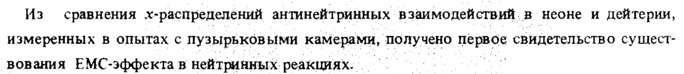 Из сравнения .х-распределенйй антинейтринных взаимодействий в неоне и дейтерии, измеренных в опытах с пузырьковыми камерами, получено первое свидетельство существования ЕМС-эффекта в нейтринных реакциях.
