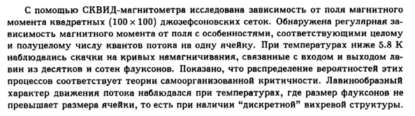 С помощью СКВИД-магнитометра исследована зависимость от поля магнитного момента квадратных (100 χ 100) джозефсоновских сеток. Обнаружена регулярная зависимость магнитного момента от поля с особенностями, соответствующими целому и полуцелому числу квантов потока на одну ячейку. При температурах ниже 5.8 К наблюдались скачки на кривых намагничивания, связанные с входом и выходом лавин из десятков и сотен флуксонов. Показано, что распределение вероятностей этих процессов соответствует теории самоорганизованной критичности. Лавинообразный характер движения потока наблюдался при температурах, где размер флуксонов не превышает размера ячейки, то есть при наличии "дискретной" вихревой структуры.