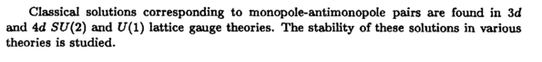 Classical solutions corresponding to monopole-antimonopole pairs are found in 3d and 4d SU(2) and U(1) lattice gauge theories. The stability of these solutions in various theories is studied.