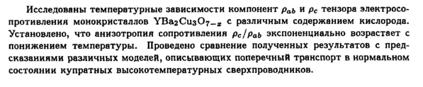 Исследованы температурные зависимости компонент раь и рс тензора электросопротивления монокристаллов YBa2Cu307_iP с различным содержанием кислорода. Установлено, что анизотропия сопротивления рс/раь экспоненциально возрастает с понижением температуры. Проведено сравнение полученных результатов с предсказаниями различных моделей, описывающих поперечный транспорт в нормальном состоянии купратных высокотемпературных сверхпроводников.