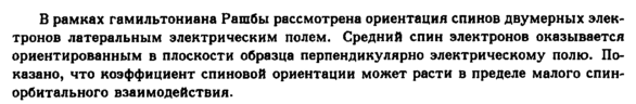 В рамках гамильтониана Рашбы рассмотрена ориентация спинов двумерных электронов латеральным электрическим полем. Средний спин электронов оказывается ориентированным в плоскости образца перпендикулярно электрическому полю. Показано, что коэффициент спиновой ориентации может расти в пределе малого спин-орбитального взаимодействия.