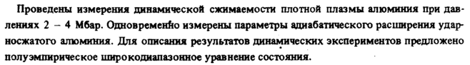 Проведены измерения динамической сжимаемости плотной плазмы алюминия при давлениях 2-4 Мбар. Одновременно измерены параметры адиабатического расширения удар-носжатого алюминия. Для описания результатов динамических экспериментов предложено полу эмпирическое широкодиапазонное уравнение состояния.