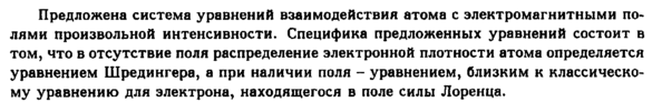 Предложена система уравнений взаимодействия атома с электромагнитными полями произвольной интенсивности. Специфика предложенных уравнений состоит в том, что в отсутствие поля распределение электронной плотности атома определяется уравнением Шредингера, а при наличии поля уравнением, близким к классическому уравнению для электрона, находящегося в поле силы Лоренца.